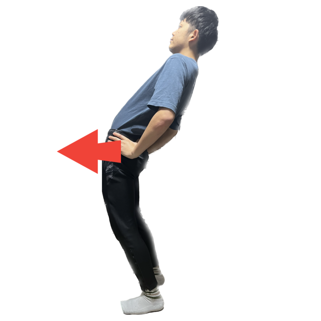 普通に立っている時でも、キックしている時でも、ジャンプするときでも、腰が反りやすい状態です。