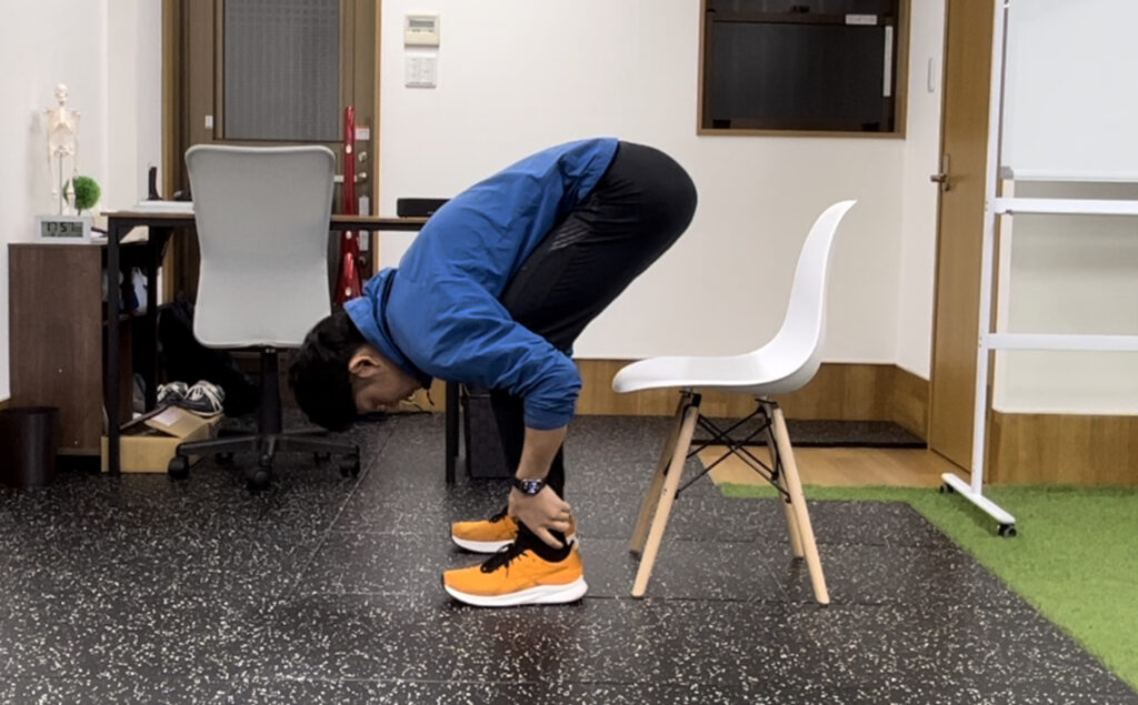 特に股関節周りの筋肉が硬いことが多く、体を前にかがめる(前屈)動作や体を後ろに反る(後屈)動作が行かない選手も多いです。