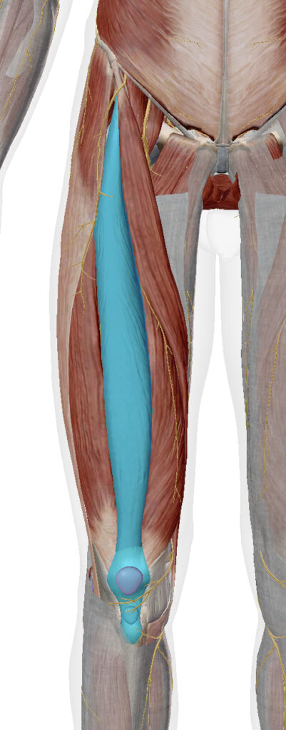 もも前の筋肉は骨盤からお皿の下の骨までついています。