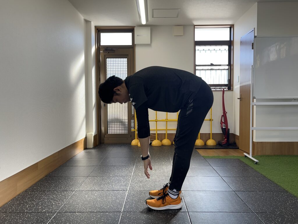 - 手が床に着けば柔らかい、つかなければ筋肉が硬いことが考えられます