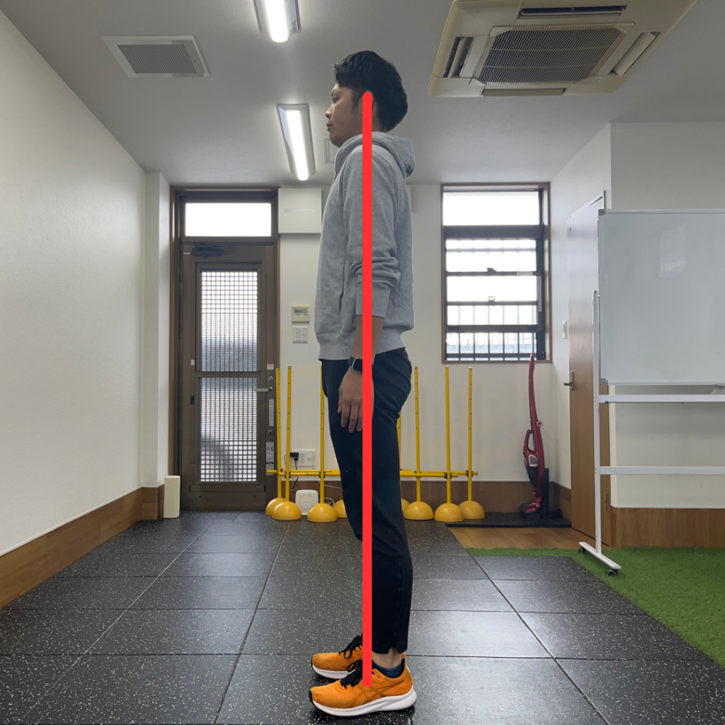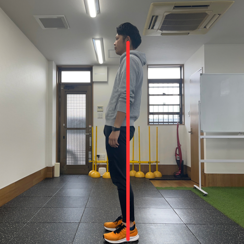 ②耳から足首まで一直線のラインが書ければいい姿勢です