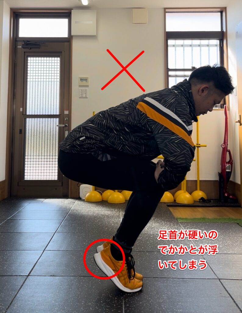 ②かかとが浮いてしまう場合ふくらはぎが硬い可能性があります