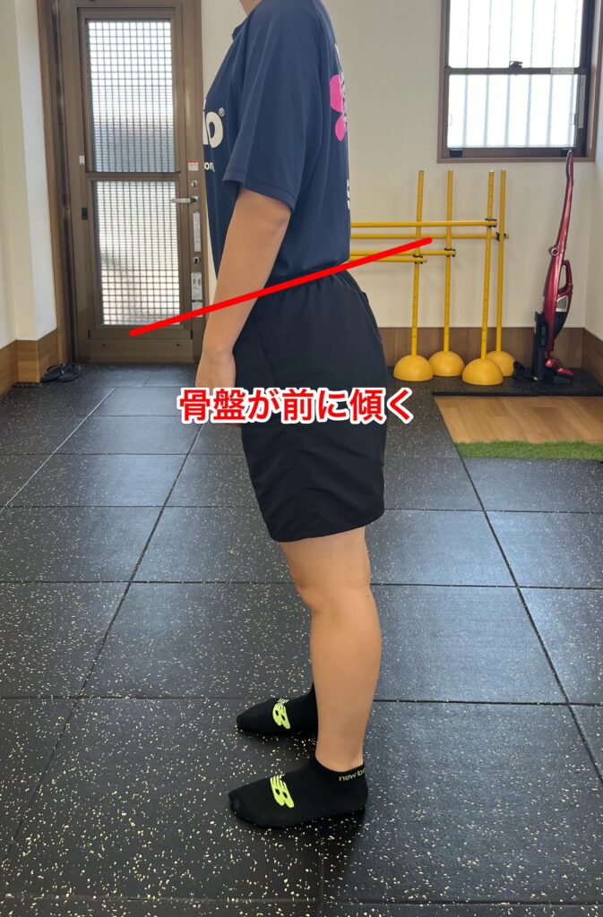 変形性股関節症では基本的に骨盤と腰骨が前に倒れてでっちりになっている場合が多いです。