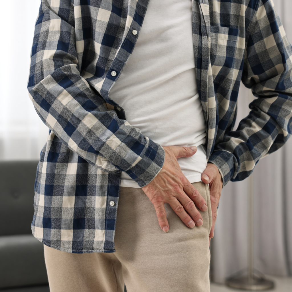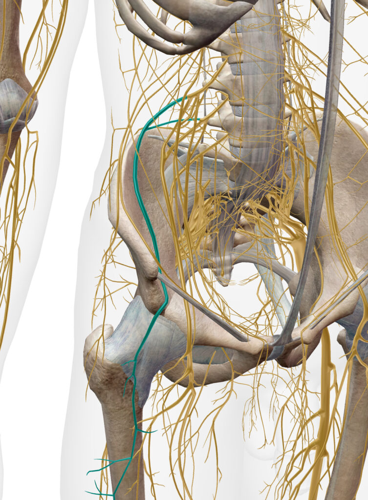 この神経が筋肉の硬さによって圧迫されると太ももの外側や股関節の外側に痛みを感じます。