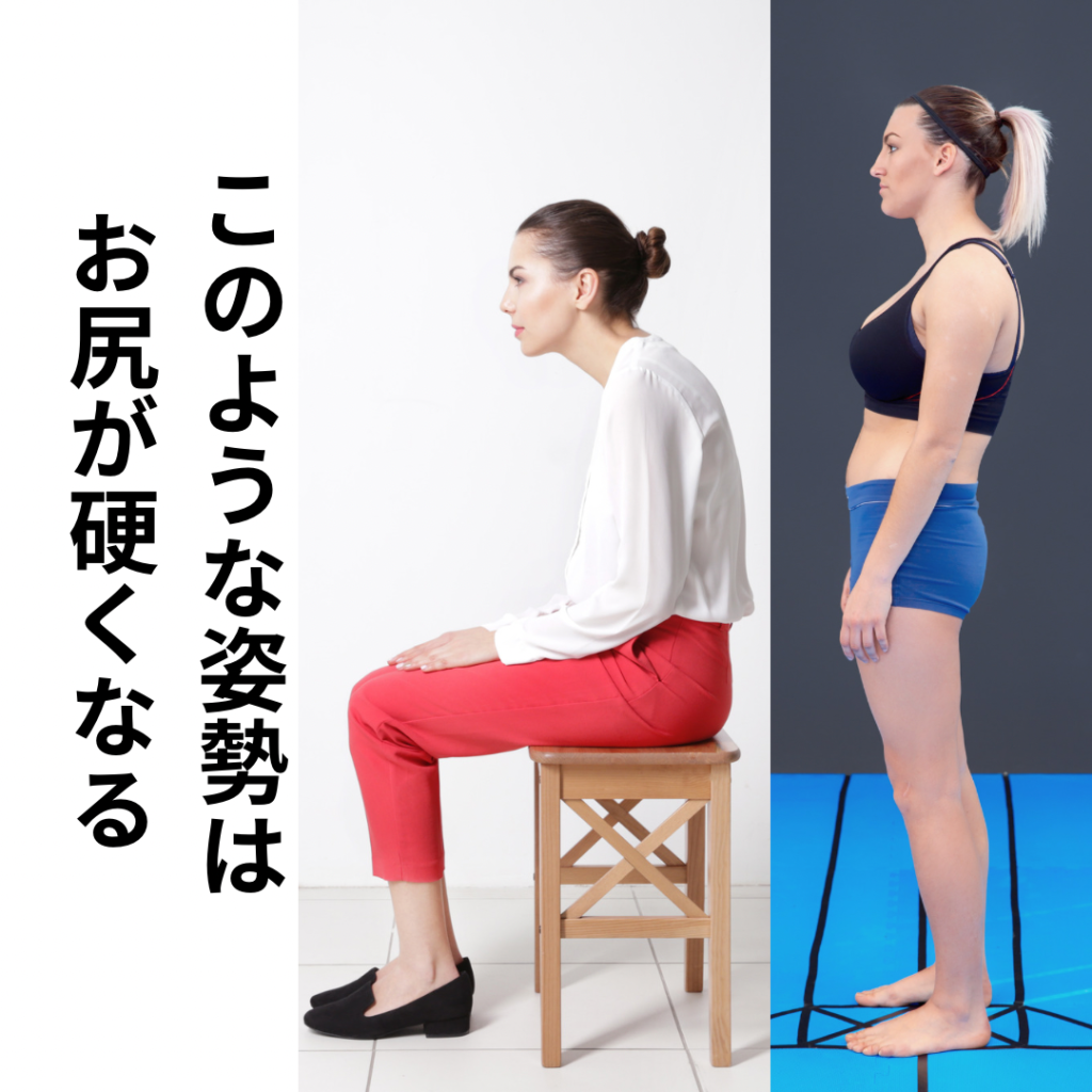 通常は前後の筋肉でバランスを取っているのですが、普段のデスクワークや座っていることが多かったり、姿勢が悪くなるとお尻の筋肉が硬くなってしまいます。