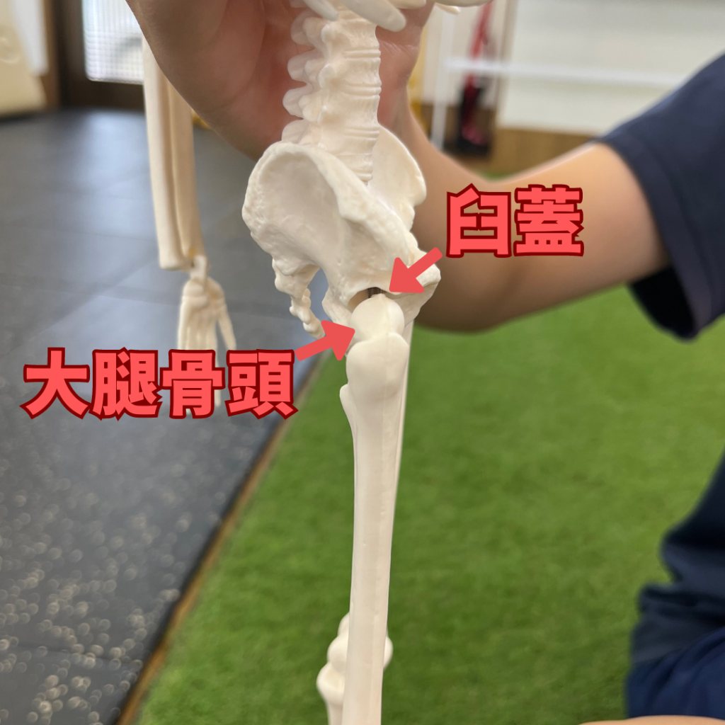 股関節は骨盤側にあるくぼみの臼蓋(きゅうがい)に大腿骨頭(だいたいこっとう)といわれる太ももの骨がはまり込んで構成されています。