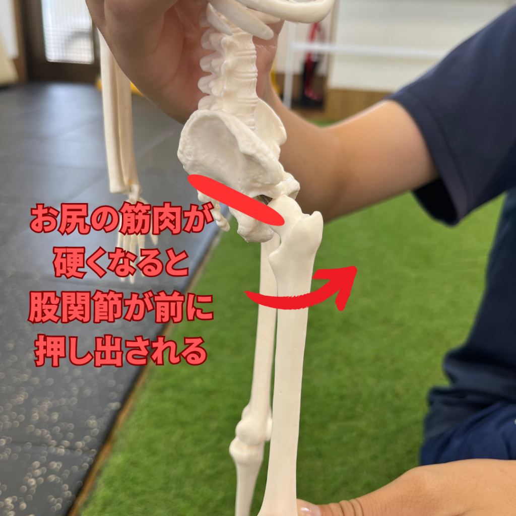 そしてお尻の筋肉が硬くなると股関節を前に押し出してしまいます。
