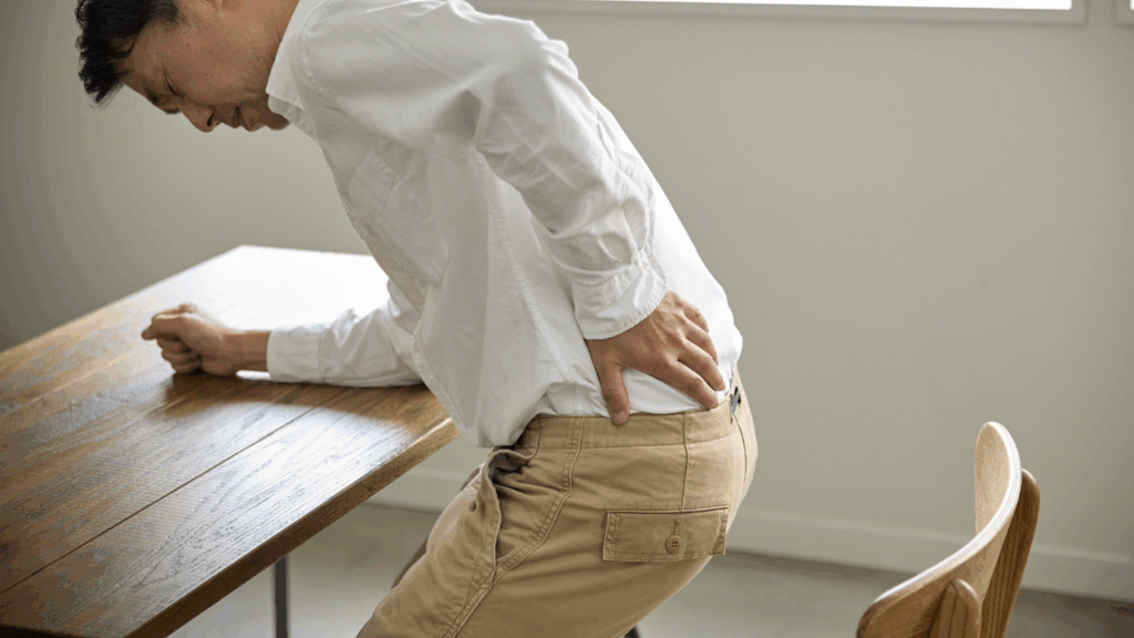 長時間同じ姿勢でいるとお尻から足にかけて痛みやしびれが強くなってしまう可能性があります。特に座りっぱなしは危険です。タイミングを見て背伸びをしてみたり、立ち上がったり、同じ姿勢が続かないように注意してみてください。