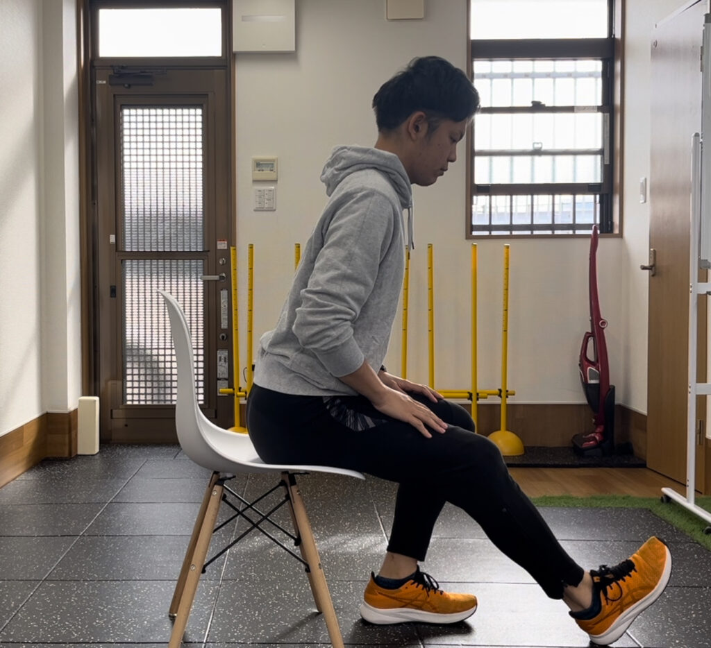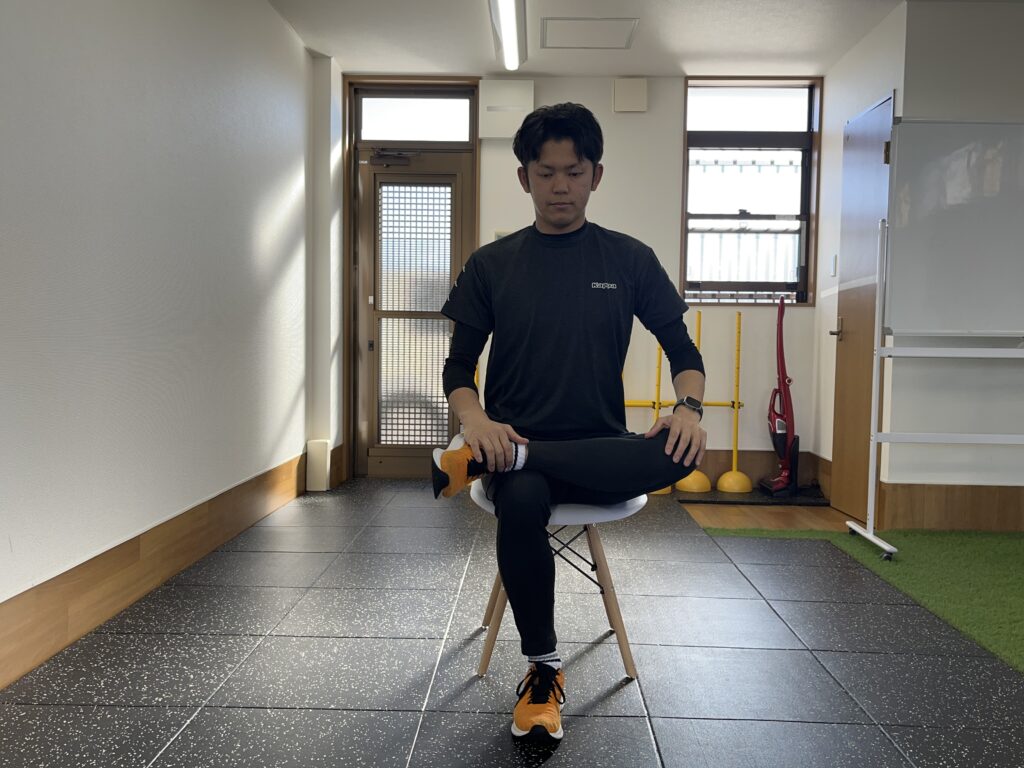 ①座ったまま足を反対の膝の上に乗せる
