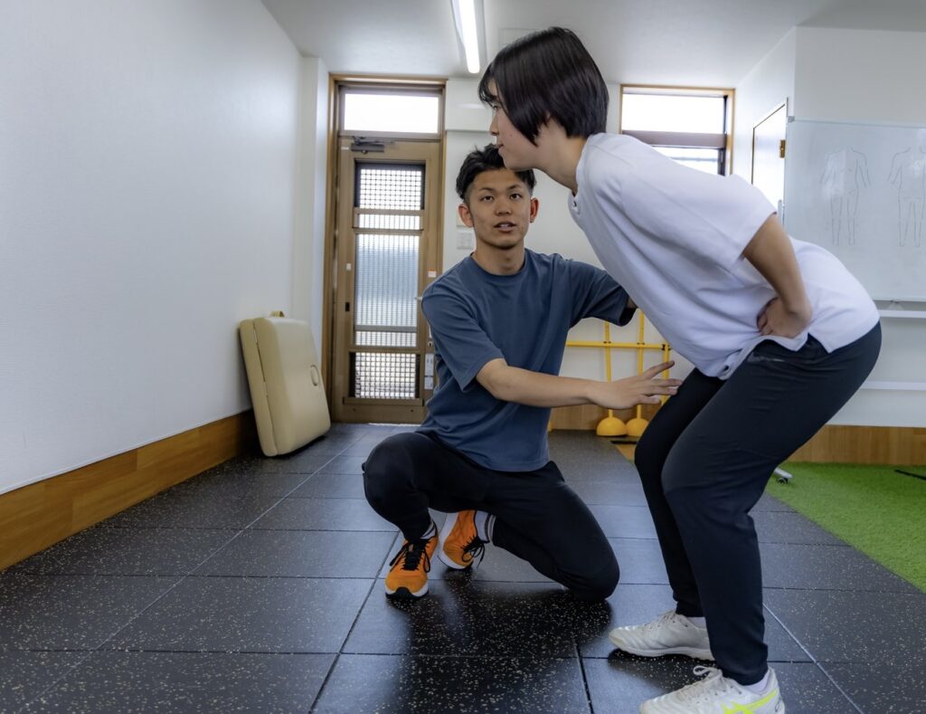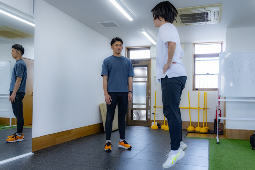 そうならないためにも選手の姿勢や動き、競技フォームを確認し、再発させないアプローチを行います。