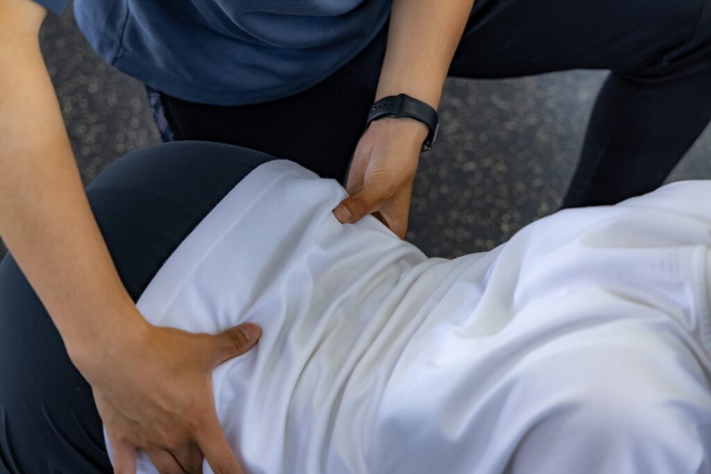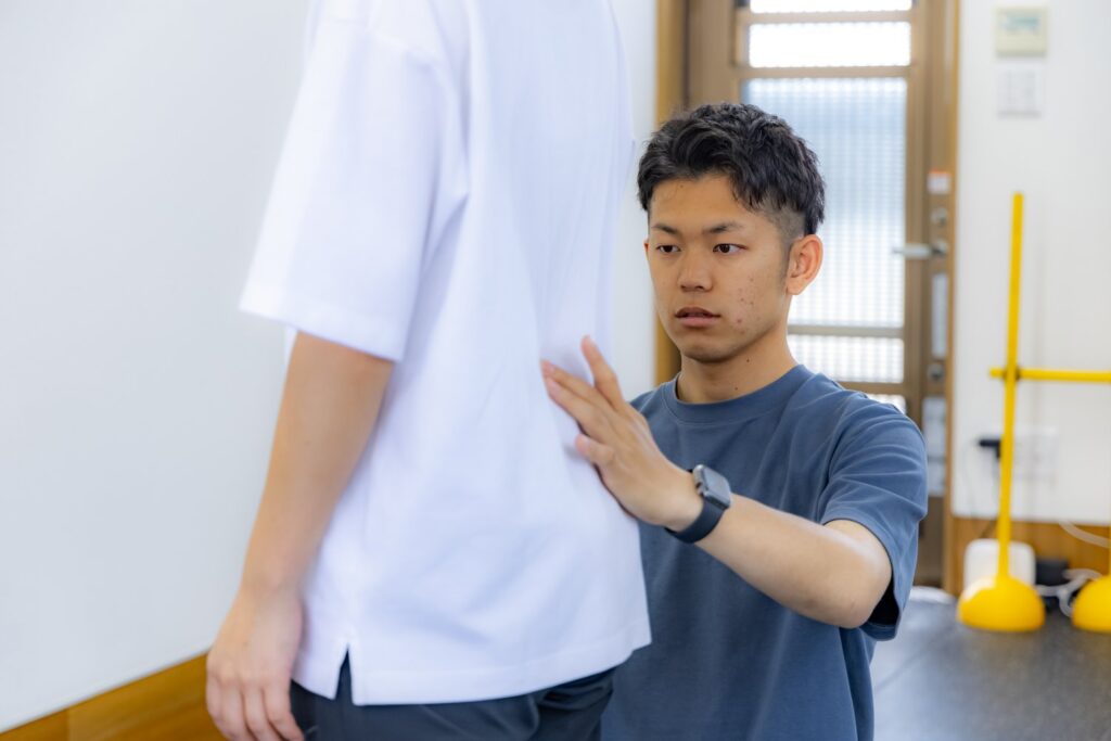 カウンセリングでは現在の体の状態をお聞きし、姿勢や体の動きをチェックします。腰の痛みが出る原因や復帰に向けて不安なことなど詳しくお話を伺い問題点と解決方法を導き出します。