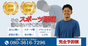 お電話の際は「シンスプリント整体」とおっしゃっていただき、LINEの場合は「シンスプリント整体受けたいです」と送信ください。