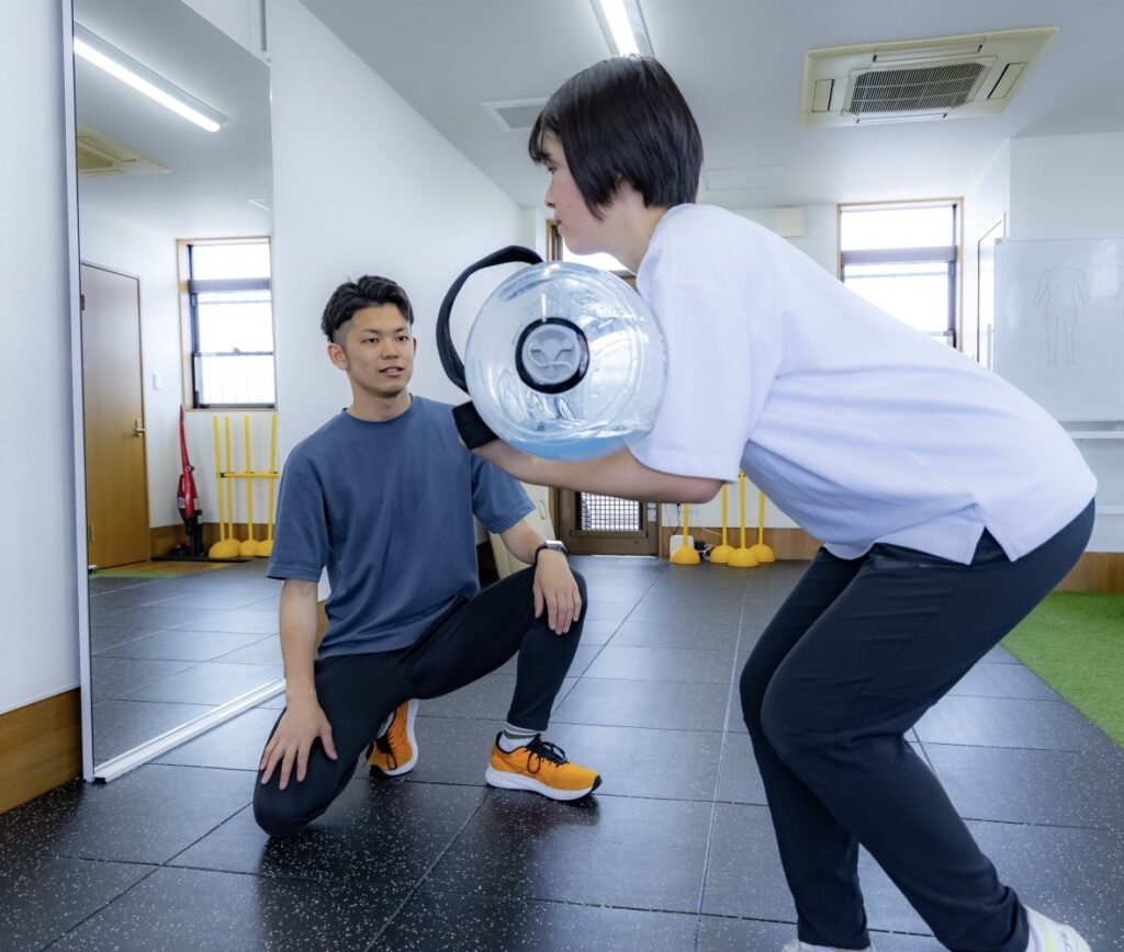 簡単に言えば、プレー中に膝に負担のかかりやすい動きをしているのでいつまで経っても痛みが変わらないのです。選手に合わせて正しい運動を行うことで膝の痛みが無くなっていきます。