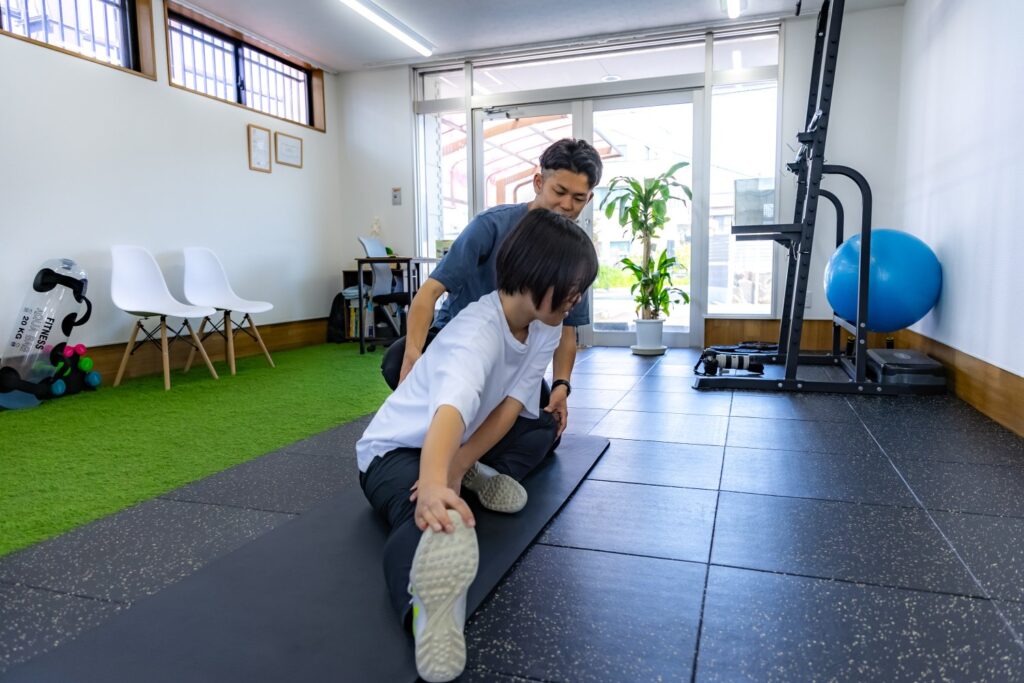 リモーションでは、お子様の痛みを素早く改善し、痛みが再発しないように姿勢や体の使い方を変えるトレーニングを行います。また、ご自宅でもセルフケアを継続してもらえるように一人一人に合わせたオーダーメイドのメニューを作成いたします。