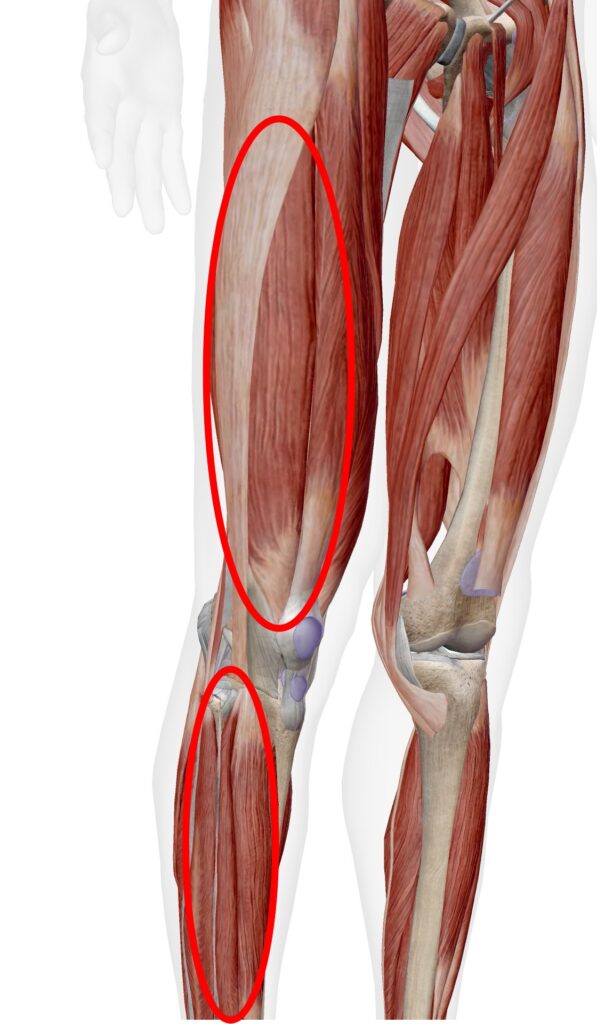 膝がねじれる原因は【太ももとスネの筋肉が硬くなるから】です。