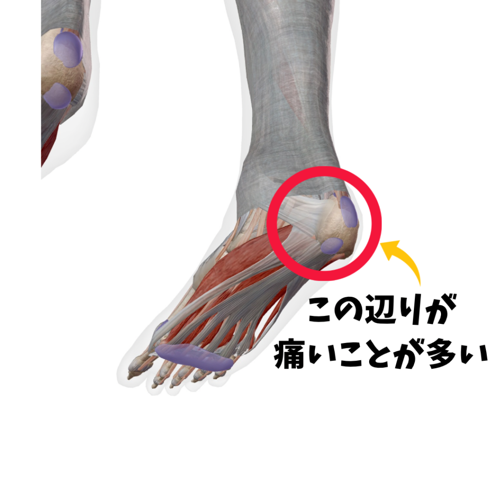 そうすると、かかとから足先まで付く筋肉が引き延ばされて痛みにつながります。