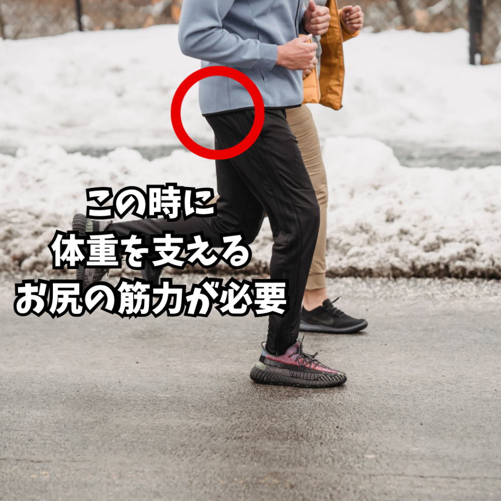 つまり、片足で全体重を支える筋力が必要なのです。さらに走っている時は勢いもつくので自分の体重よりもより高い負荷がかかります。