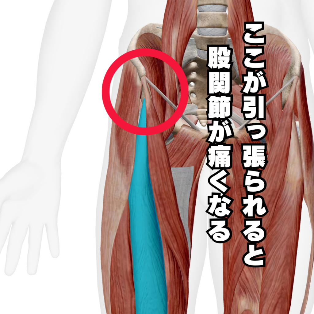 さらに、上記の態勢は股関節の靭帯も緊張(負担がかかりやすい)しているので、余計痛みが出てしまいます。